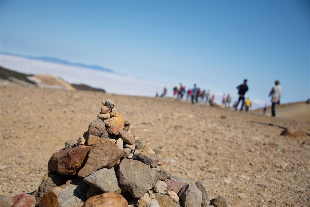 北に一切経山、東の吾妻小富士山呼ばれる山々に囲まれている浄土平。その内の吾妻小富士はビジターセンターの目の前にあります。浄土平駐車場から10分程度で火口壁に立つことができるので、休憩がてらに軽く登山をしていく方も多いそう。