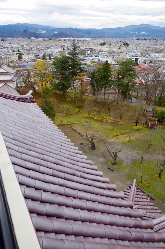 いよいよ天守閣に到着。眼科には会津の町並みが広がります。当時のお殿様は、ここから城下町や会津盆地を眺めていたんでしょうね。