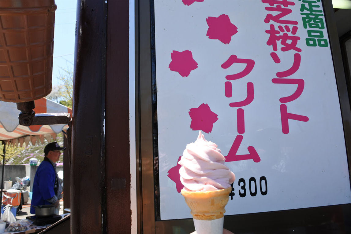 この日はとても暑く、限定の「芝桜ソフトクリーム(300円)」には長い列ができていました。ほのかな桜の香りが鼻を通り、程よい甘さと冷たさが動いた後の体に染み渡ります!